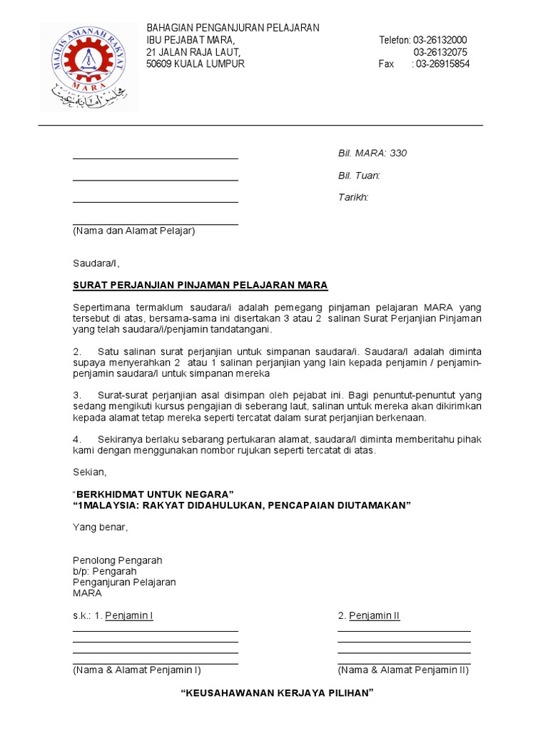 Mestech Surat Tawaran Loan Mara