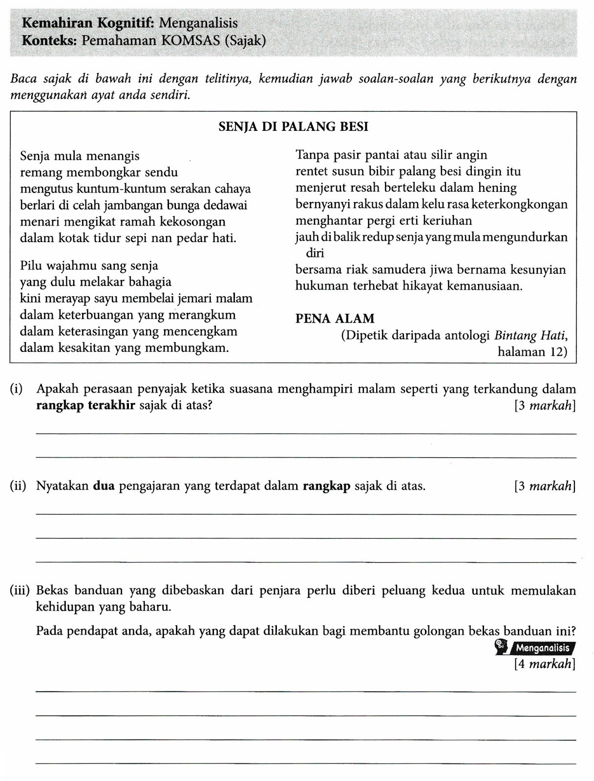 Cikgu Simile Antologi Bintang Hati Tingkatan 3 Sajak Senja Di Palang Besi