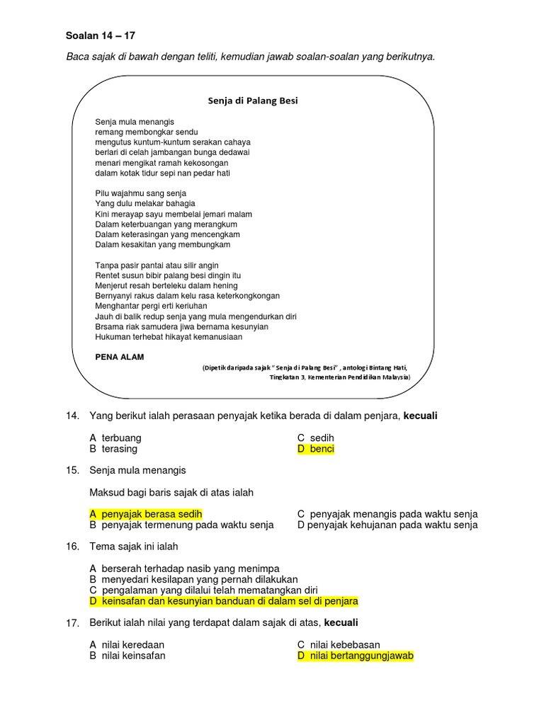 Sajak Senja Di Palang Besi Bahasa Melayu Tingkatan 3 Youtube