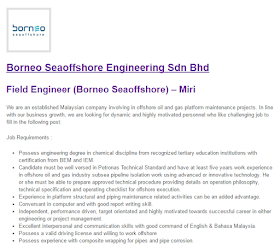 Oil Gas Vacancies Field Engineer Borneo Seaoffshore Engineering Miri