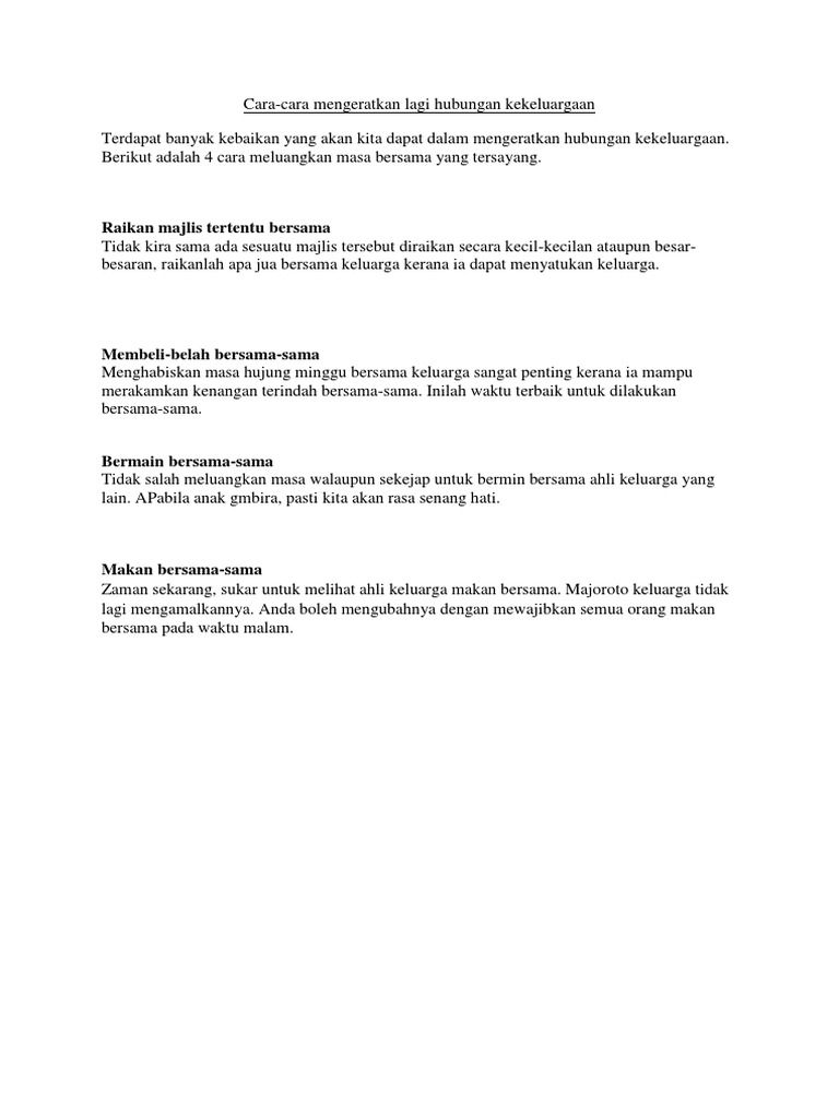 Cara Cara Mengeratkan Hubungan Kekeluargaan Karangan