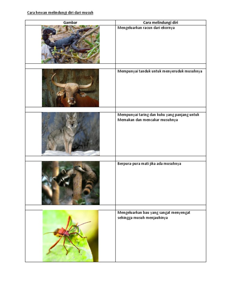 Cara Hewan Melindungi Diri Dari Musuh Docx Document