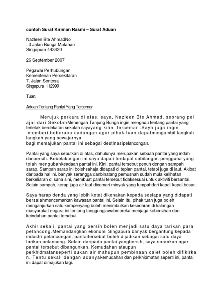 Contoh Surat Aduan