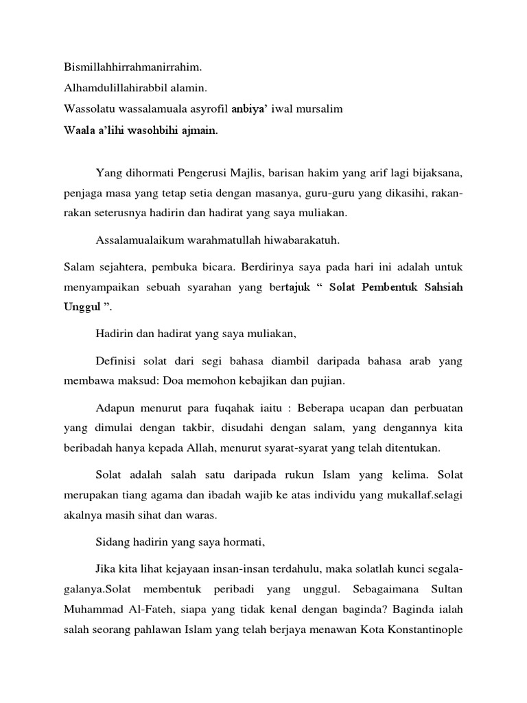Teks Syarahan Agama Bahasa Melayu Sekolah Menengah