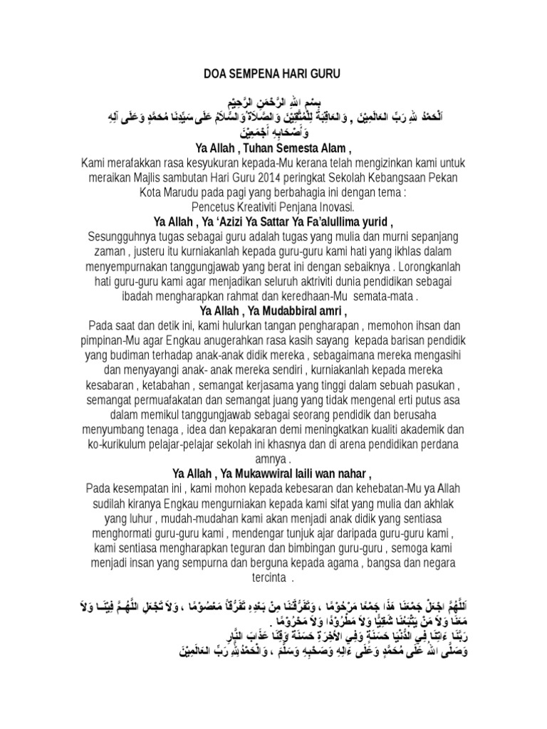 Doa Sempena Hari Guru 2017 Docx