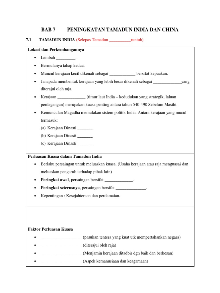 Sejarah Bab 7 Peningkatan Tamadun India Dan China By Anis Nadiah