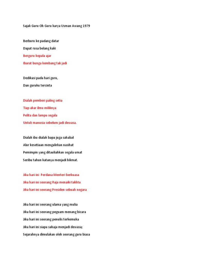 Cikgu Jer Sajak Guru Oh Guru Oleh Usman Awang 1979 Guru Poems Novelist