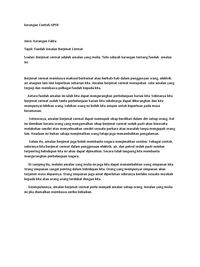 Karangan Amalan Berjimat Cermat Upsr