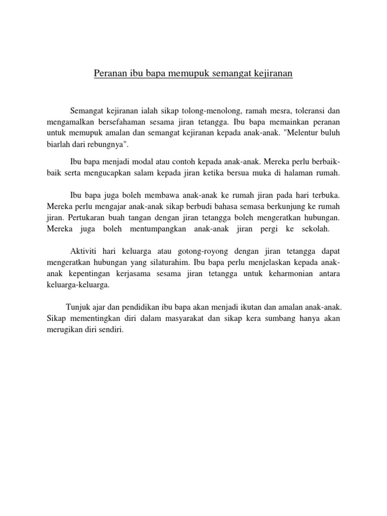 Contoh Karangan Usaha Usaha Memupuk Semangat Kejiranan Dalam Kalangan Masyarakat