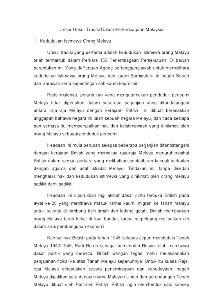 Peranan Unsur Unsur Tradisi Perlembagaan Malaysia