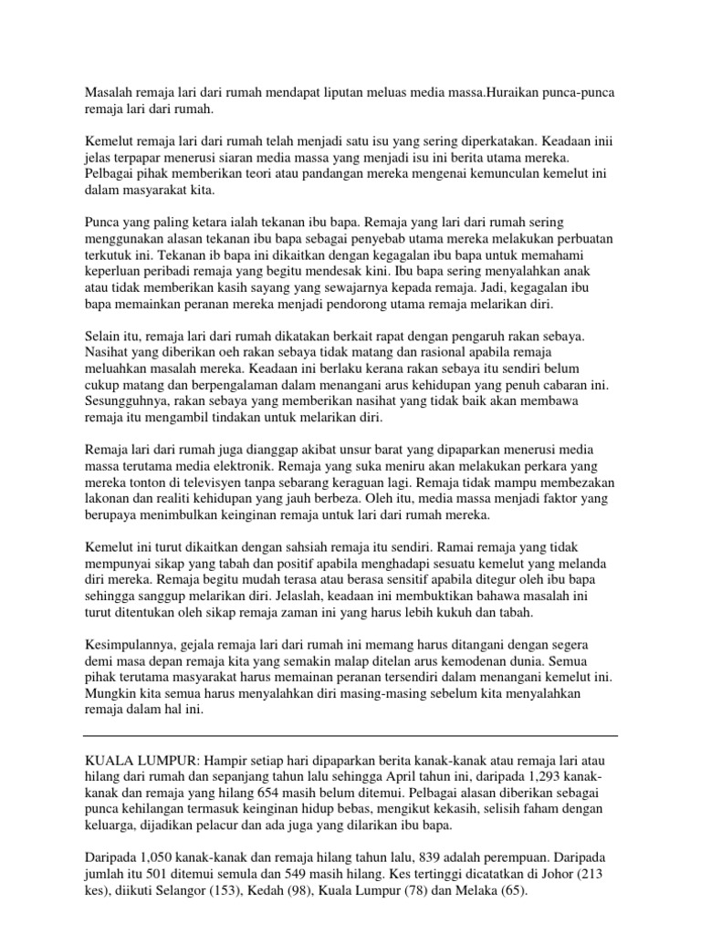 Karangan Mengatasi Ramaja Lari Dari Rumah