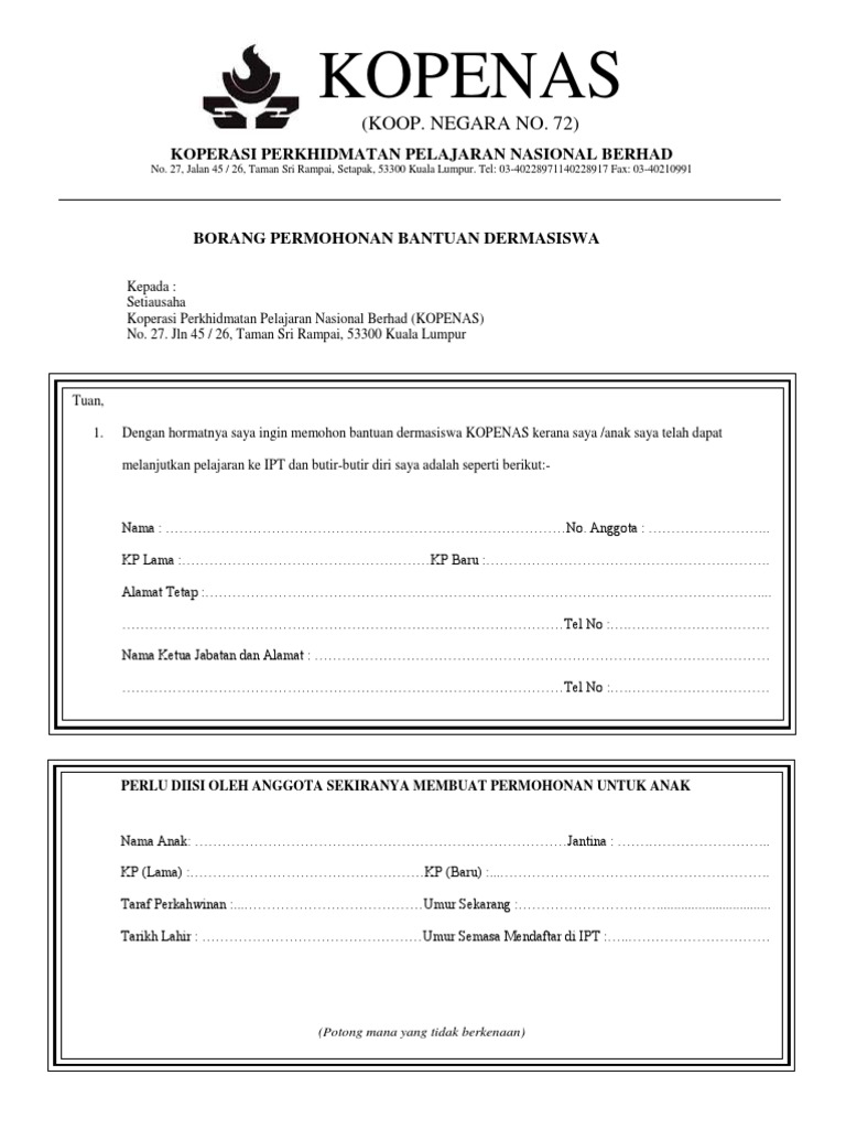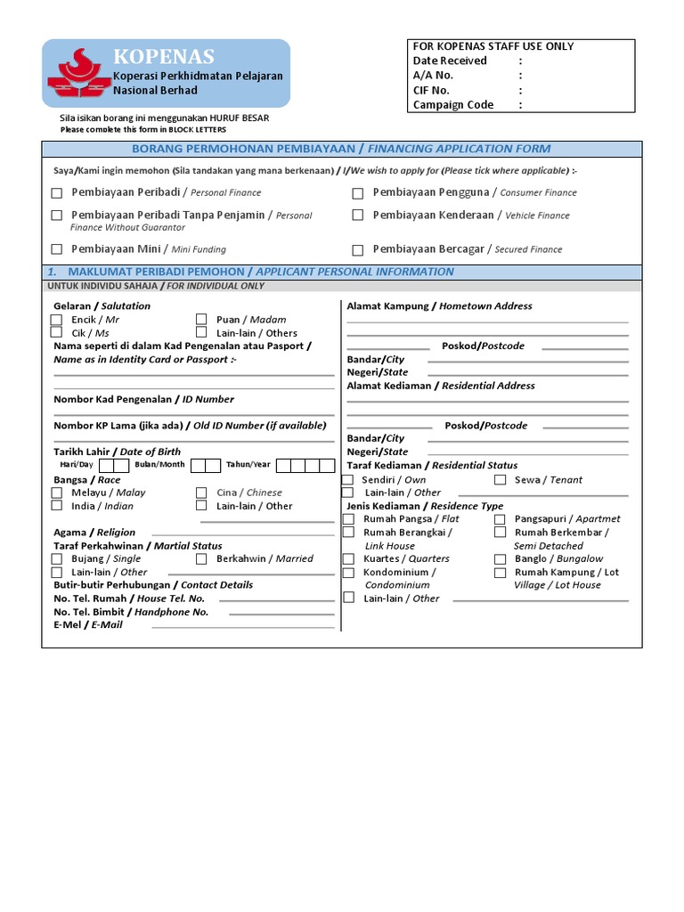 Http Kopenas My Doc Borang Pembiayaan 201601 Pdf