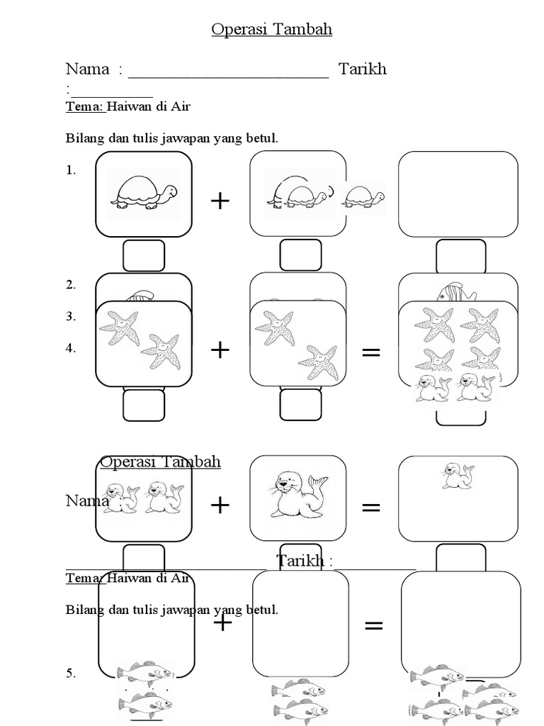 Prasekolah Operasi Tambah Lembaran Kerja