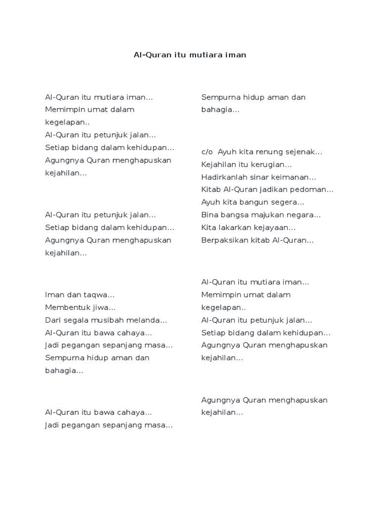 Lirik Lagu Nasyid Lirik Lagu Nasyid Raihan Iman Mutiara