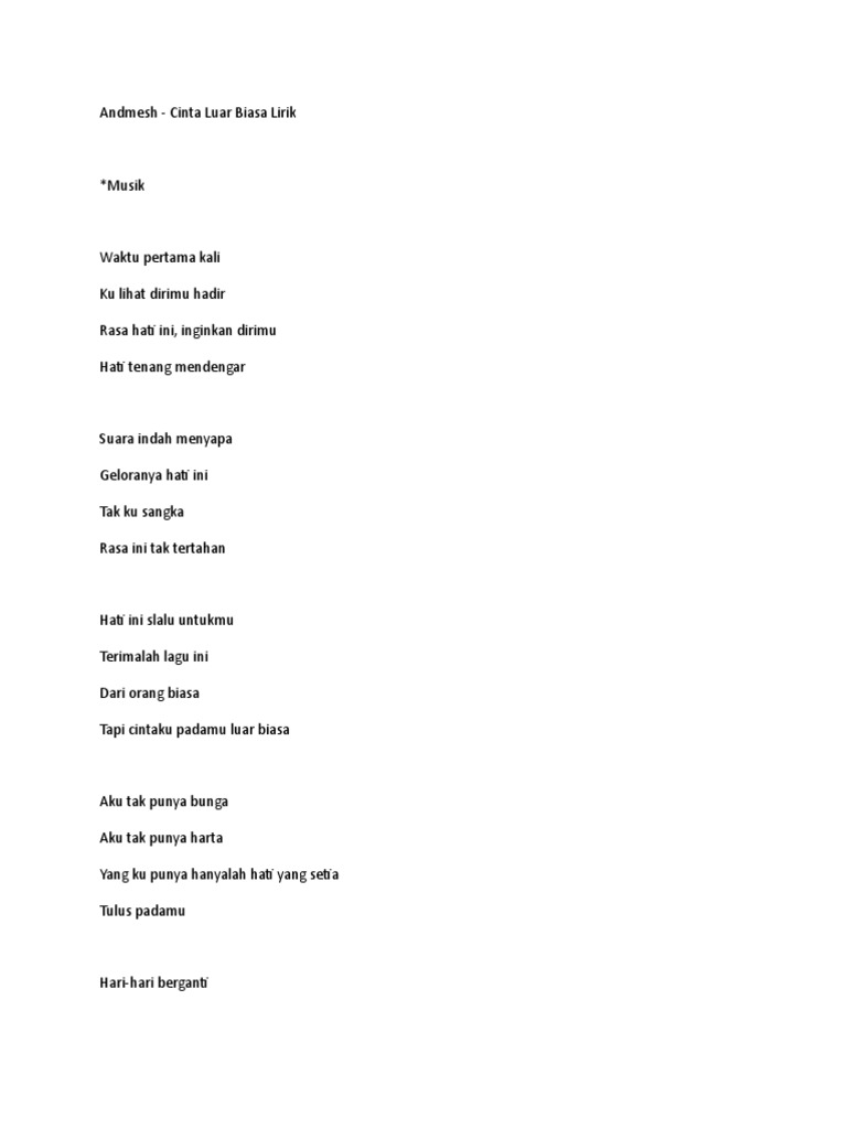 Lirik Lagu Cinta Luar Biasa Andmesh Kamaleng Wattpad