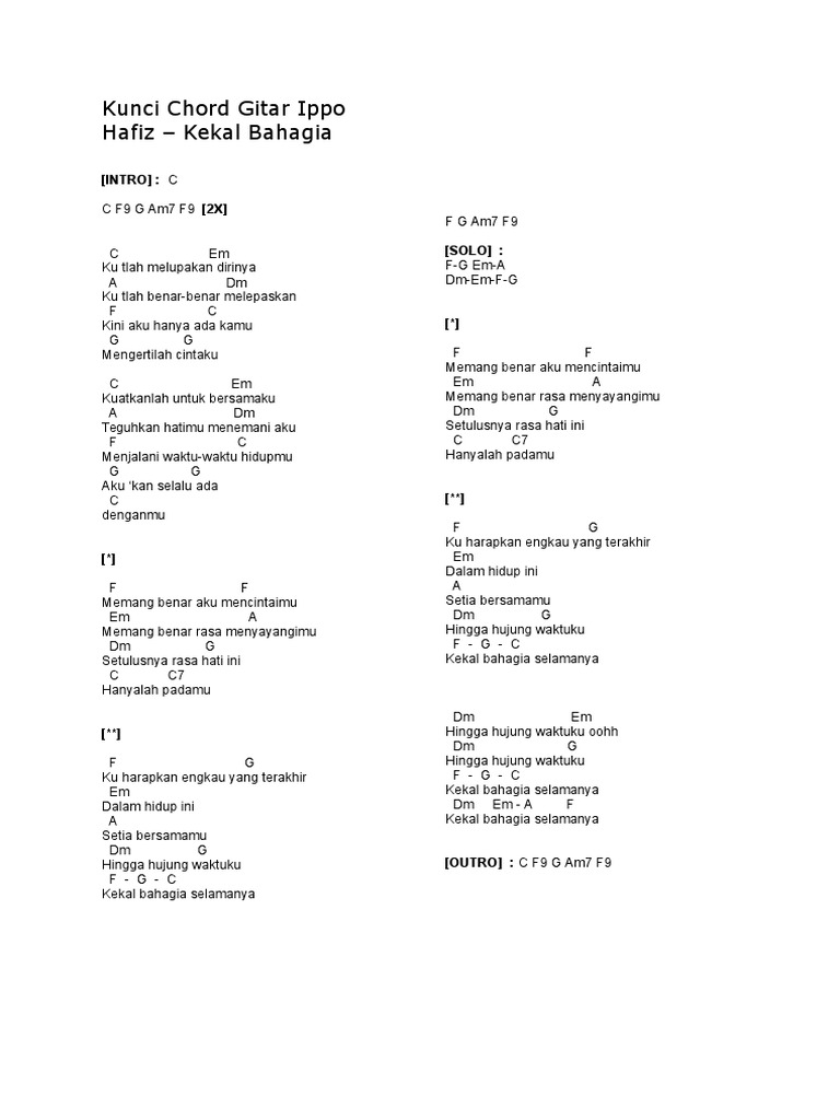 Kord Gitar Lagu Melayu Kord Gitar Lagu Ippo Hafiz Kekal Bahagia