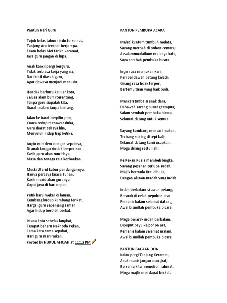 Pantun Untuk Cikgu Sempena Hari Guru Youtube