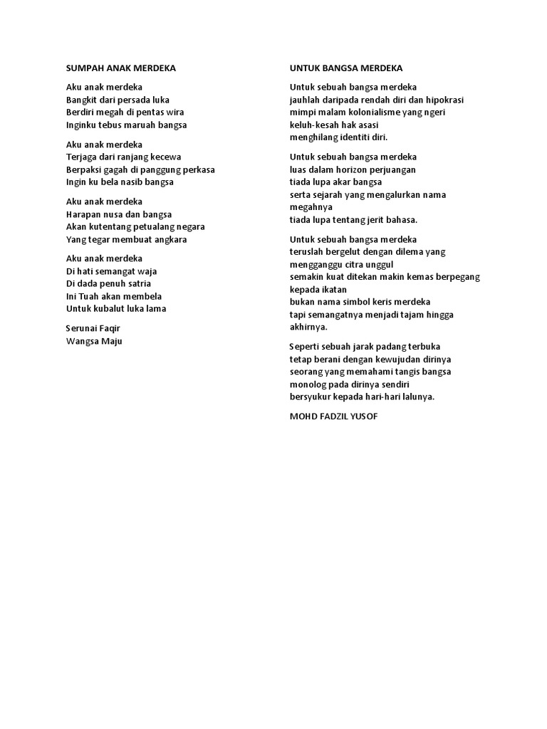 Kemerdekaan Darjah 4 Aku Anak Merdeka Sajak