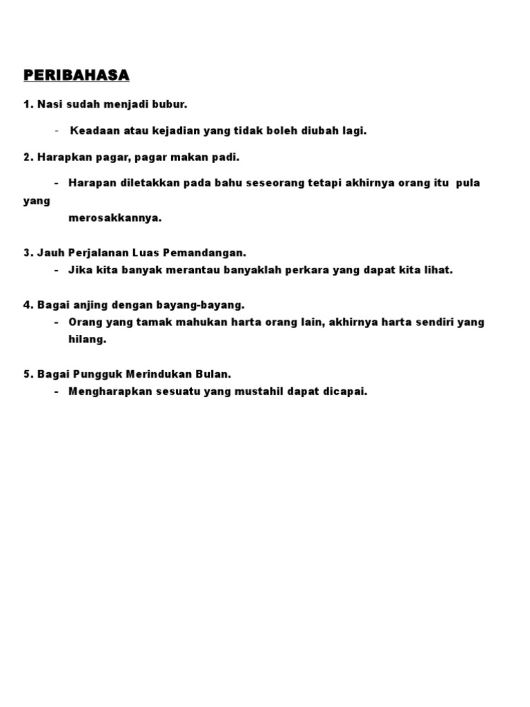 Senarai Peribahasa Dalam Buku Teks Bahasa Melayu Tingkatan 4 Dan 5