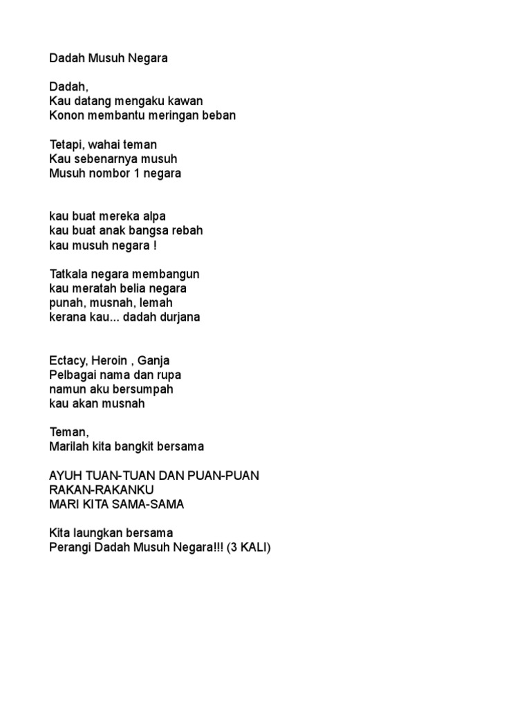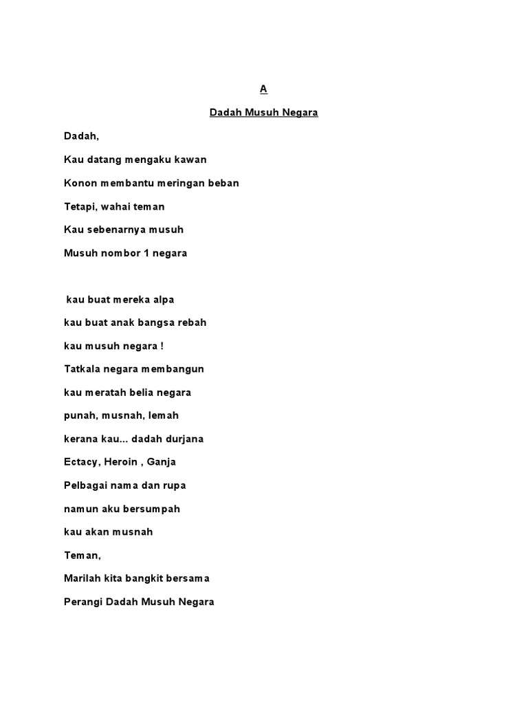 Sajak Tentang Dadah Musuh Negara
