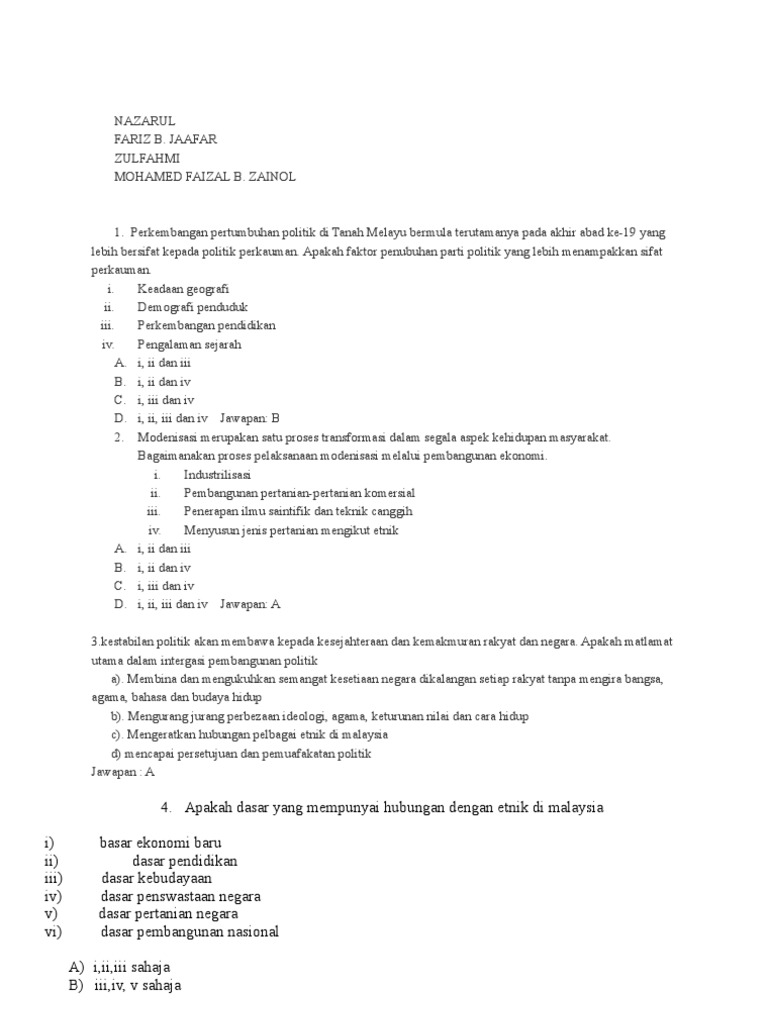Soalan Objektif Hubungan Etnik Pdf Document