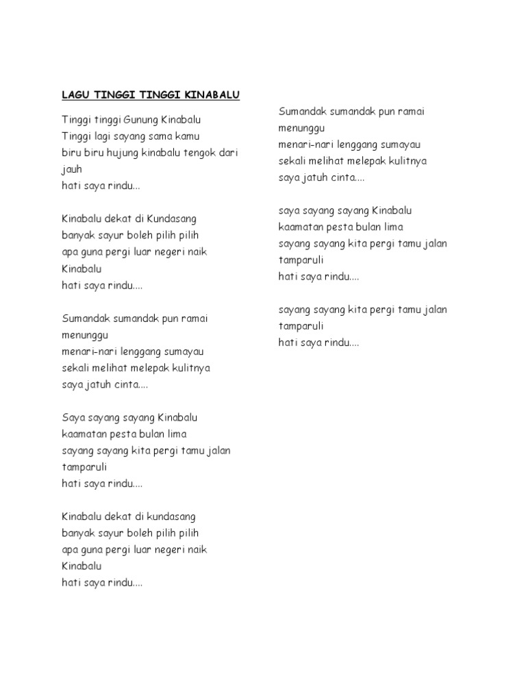 Tinggi Tinggi Gunung Kinabalu Lirik Lagu